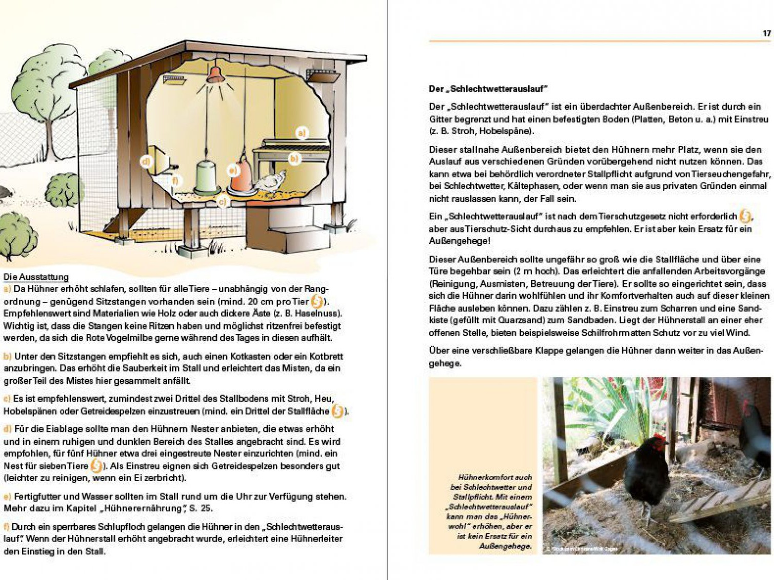 Zudem werden Tipps und Anregungen zum allgemeinen Umgang, von der Auswahl der Rasse über den Gesundheitscheck bis hin zur Hühnerbeschäftigung gegeben.